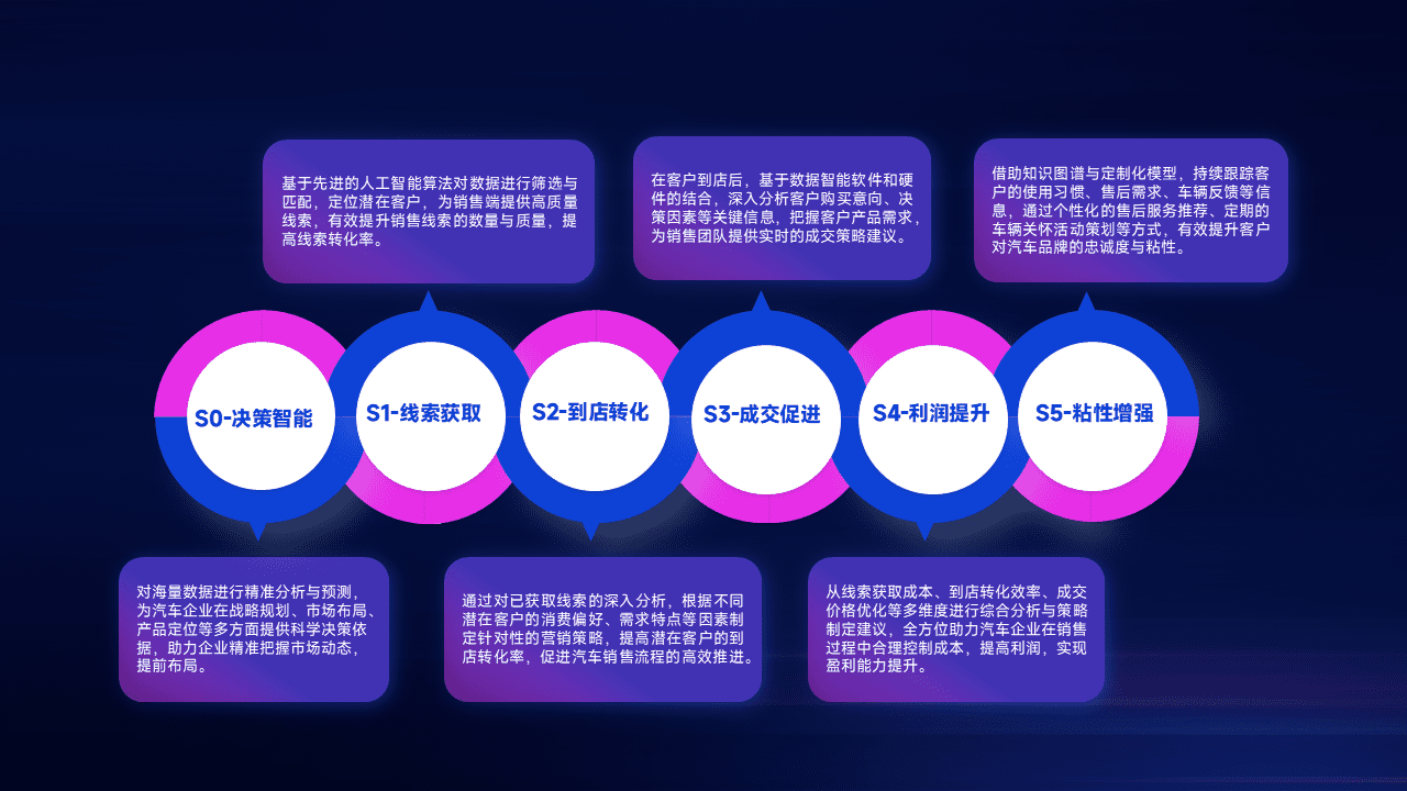 通过拓宽潜在客户来源、、优化线索分配并提高到店转化率,,,,以增强销售效率。。同时,,,,利用线索数据不断优化分析模型,,,,有效提升转化率,,,扩大营销影响力。。。。